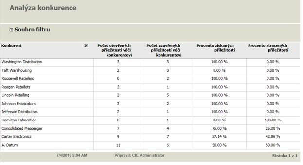 Jeden z používaných reportů pro sledování konkurence. Ukazuje nám, jak jsme úspěšní ve vztahu k danému konkurentovi.